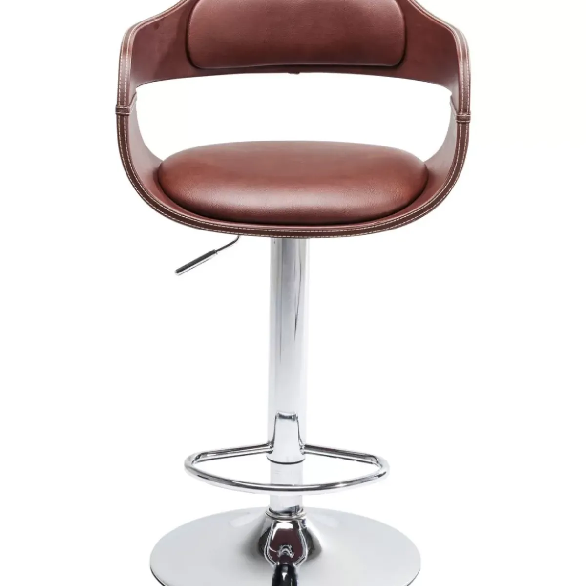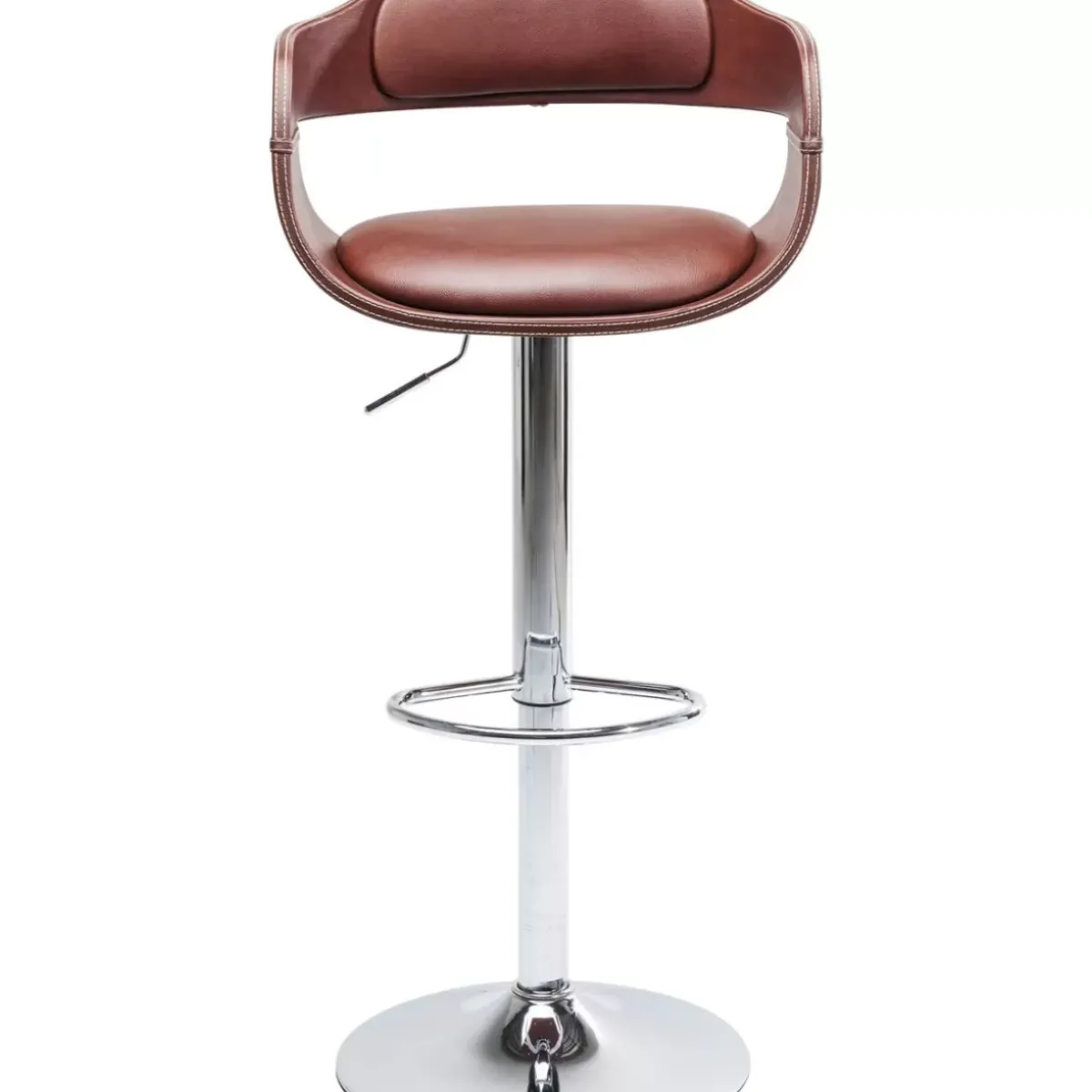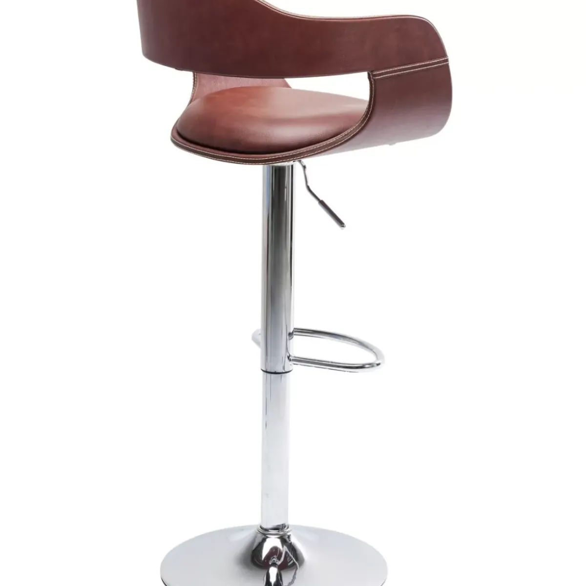 - Hohenverstellbarer Barhocker Mit Rundem,Chromfarbenem Stahl-Fus,Nougatfarbenem Bezug Im Vintage-Leder-Look Und Einer Fusstutze