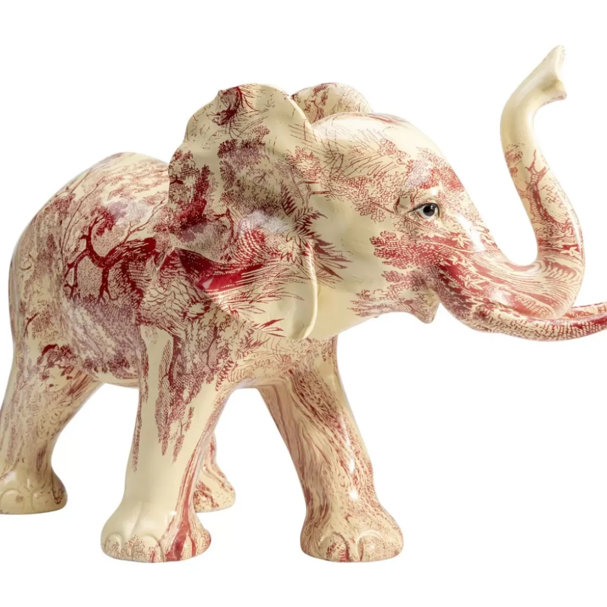 - Dekofigur Elephant In Creme-Weis Mit Rotem Dekor