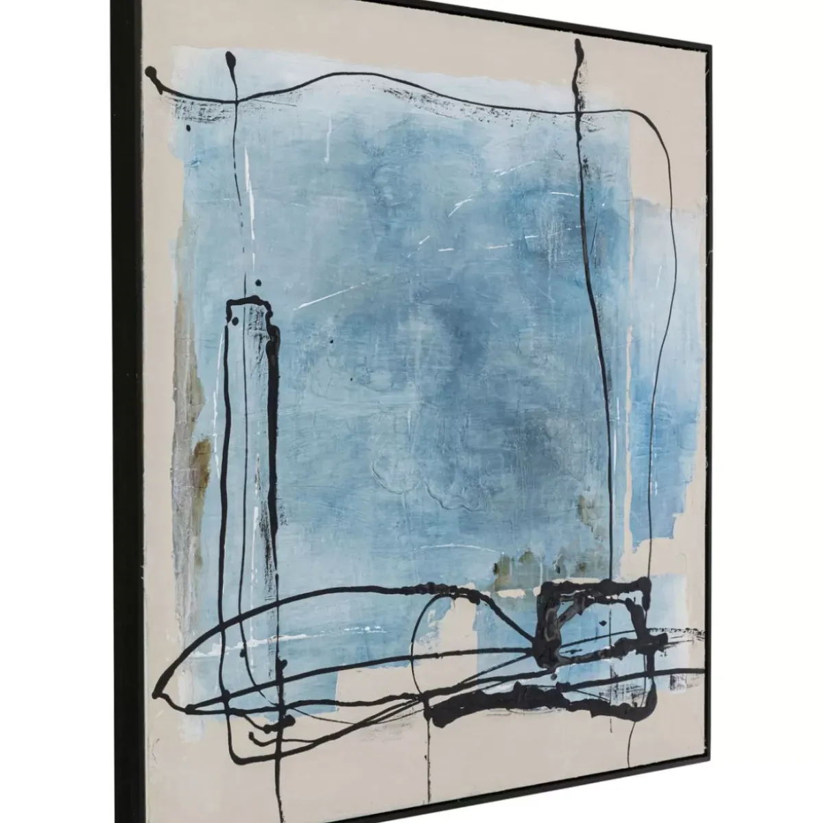 - Gerahmtes Wandbild In 100X100Cm Mit Acrylfarbe In Blau-Tonen