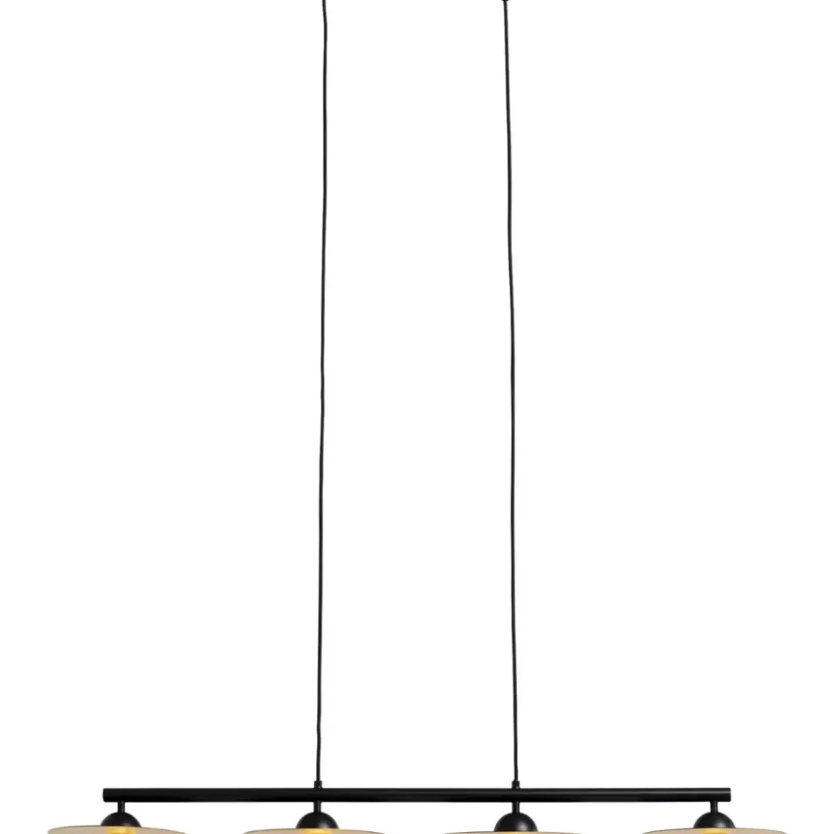 - Hangeleuchte In Den Farben Schwarz Und Gold Mit Vier Leuchtenschirmen,Hochwertig Gefertigt Mit Schirmen Und Baldachin Aus Geburstetem Messing