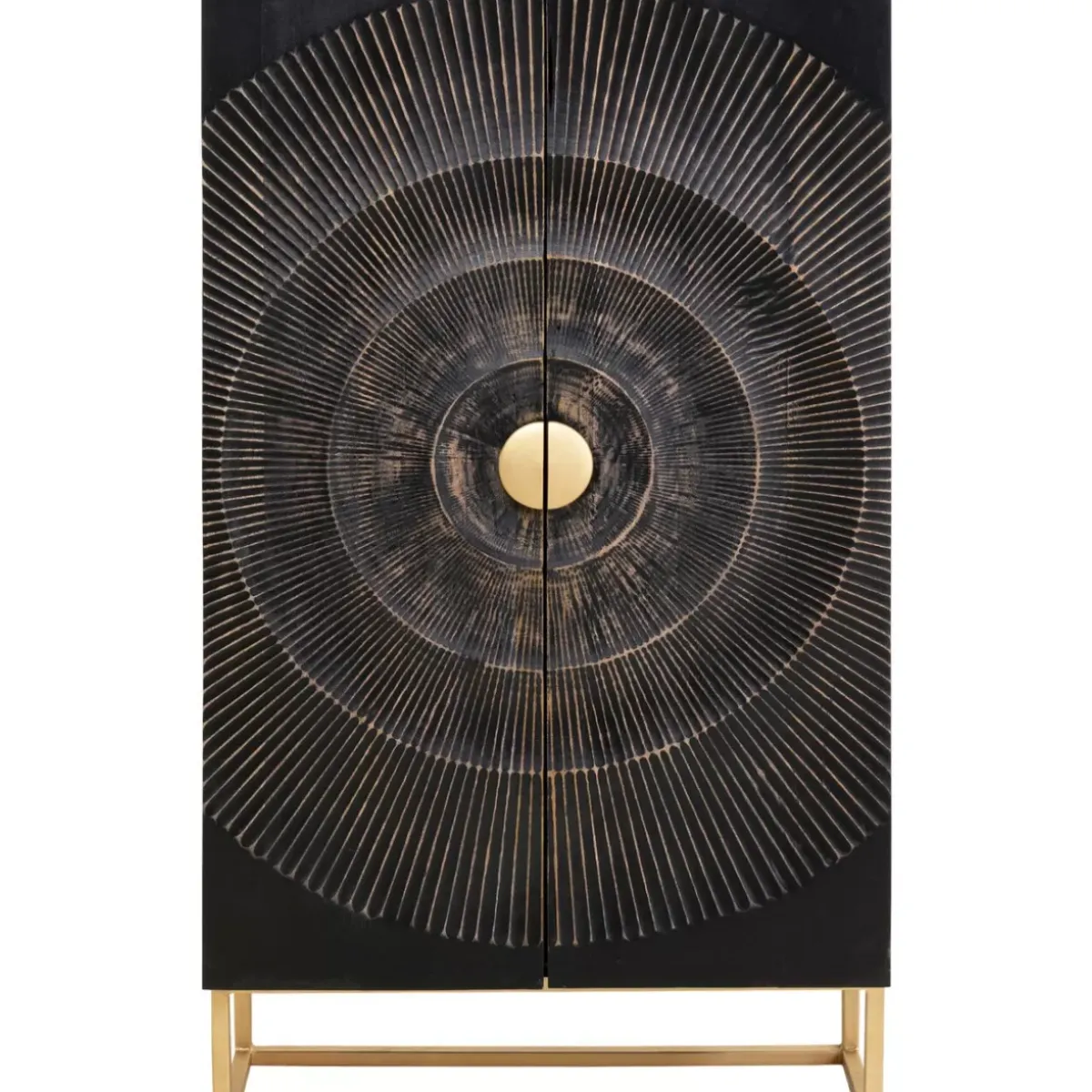 - Schmaler Schrank In Schwarz-Braun Aus Massivem Holz Mit Goldenem Gestell