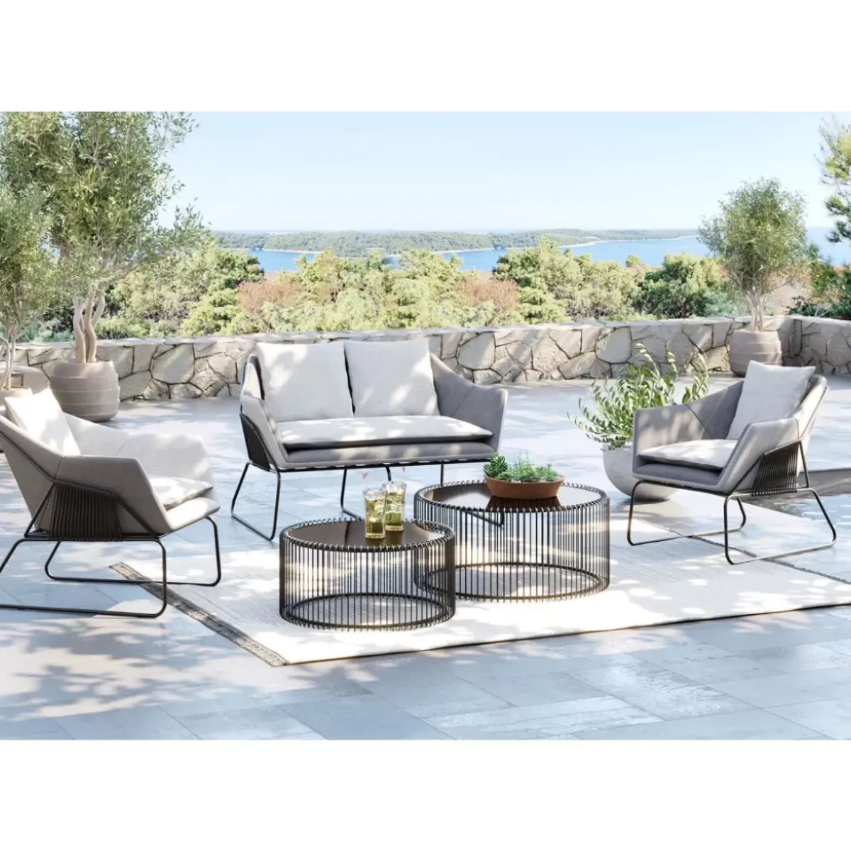 - 3-Teilige Outdoor Sitzgruppe In Grau Mit Zweisitzer Und 2 Sesseln