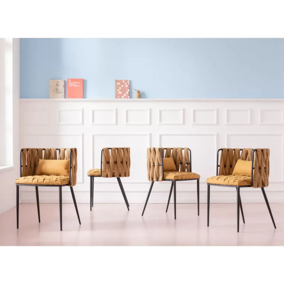 Gemutlicher Armlehnstuhl,Extra Stylisch Mit Flechtoptik In Der Trendfarbe CurryBesonders Elegant Wirkt Das Warme Gelb In…