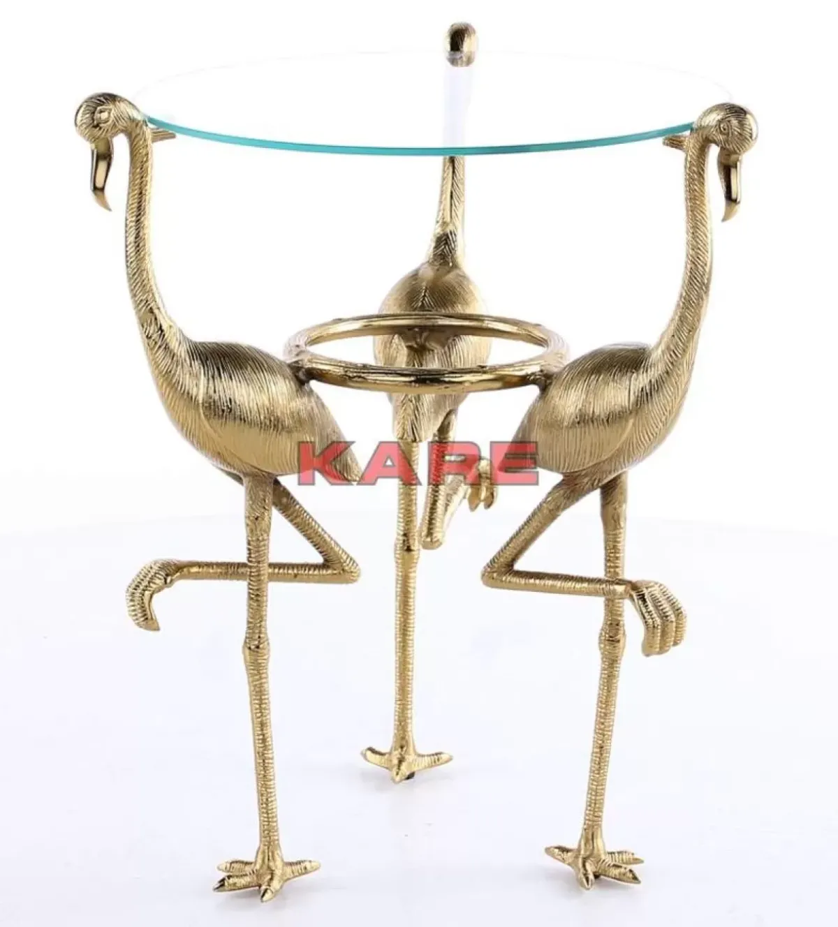 - Dekorativer,Runder Beistelltisch Mit Goldfarbenen Flamingos Als Tischfus Und Einer Runden Glasplatte