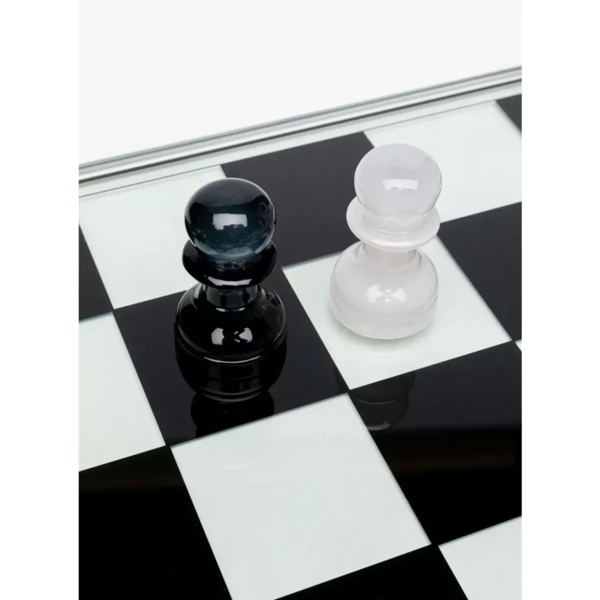 - Schachspiel In Schwarz Und Weis Mit Transparentem Schachbrett Aus Polyresin,60X60 Cm
