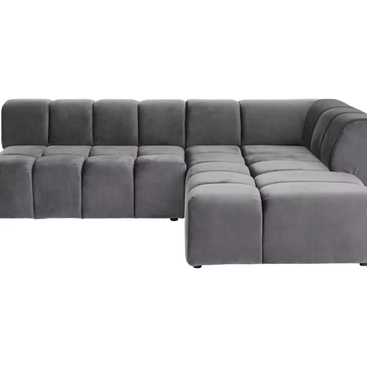 - Graues Ecksofa Mit Chaiselongue Rechts Und Einem Samtigen Bezug Aus Pflegeleichter Kunstfaser