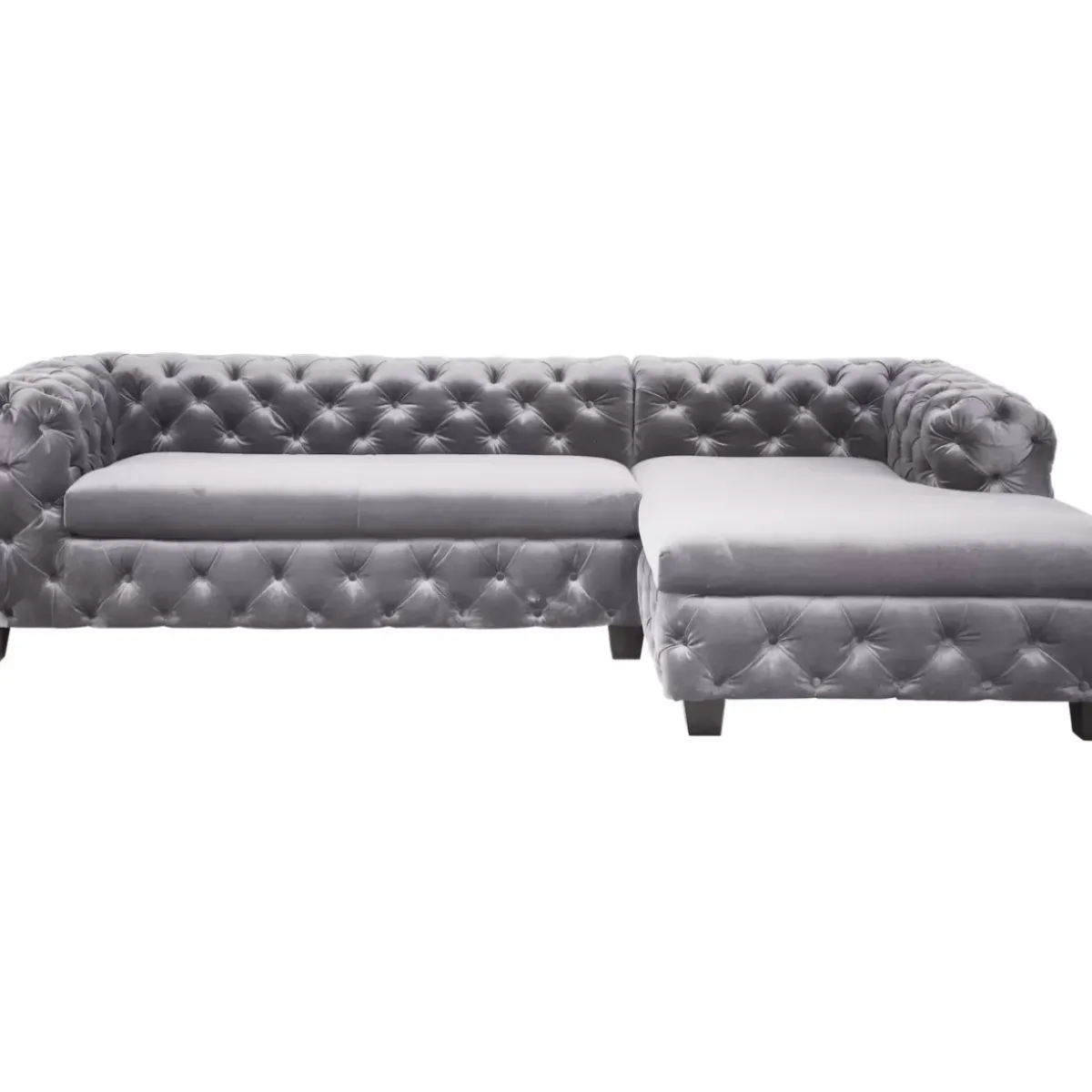 Groses,Graues Ecksofa Im Chesterfield-Stil Mit Einem Samtig Schimmernden Bezug Und Schwarzen Fusen Aus Massivholz Der Ne…