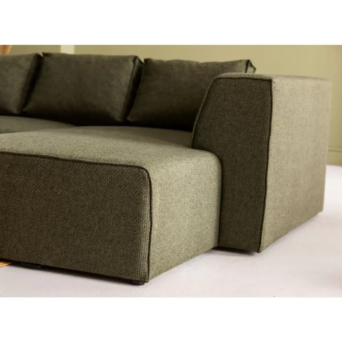 - Groszugiges Ecksofa Mit Mobilem Hockerelement,Ottomane Rechts. Drei Gleichfarbige,Rechteckige Kissen Im Lieferumfang Enthalten