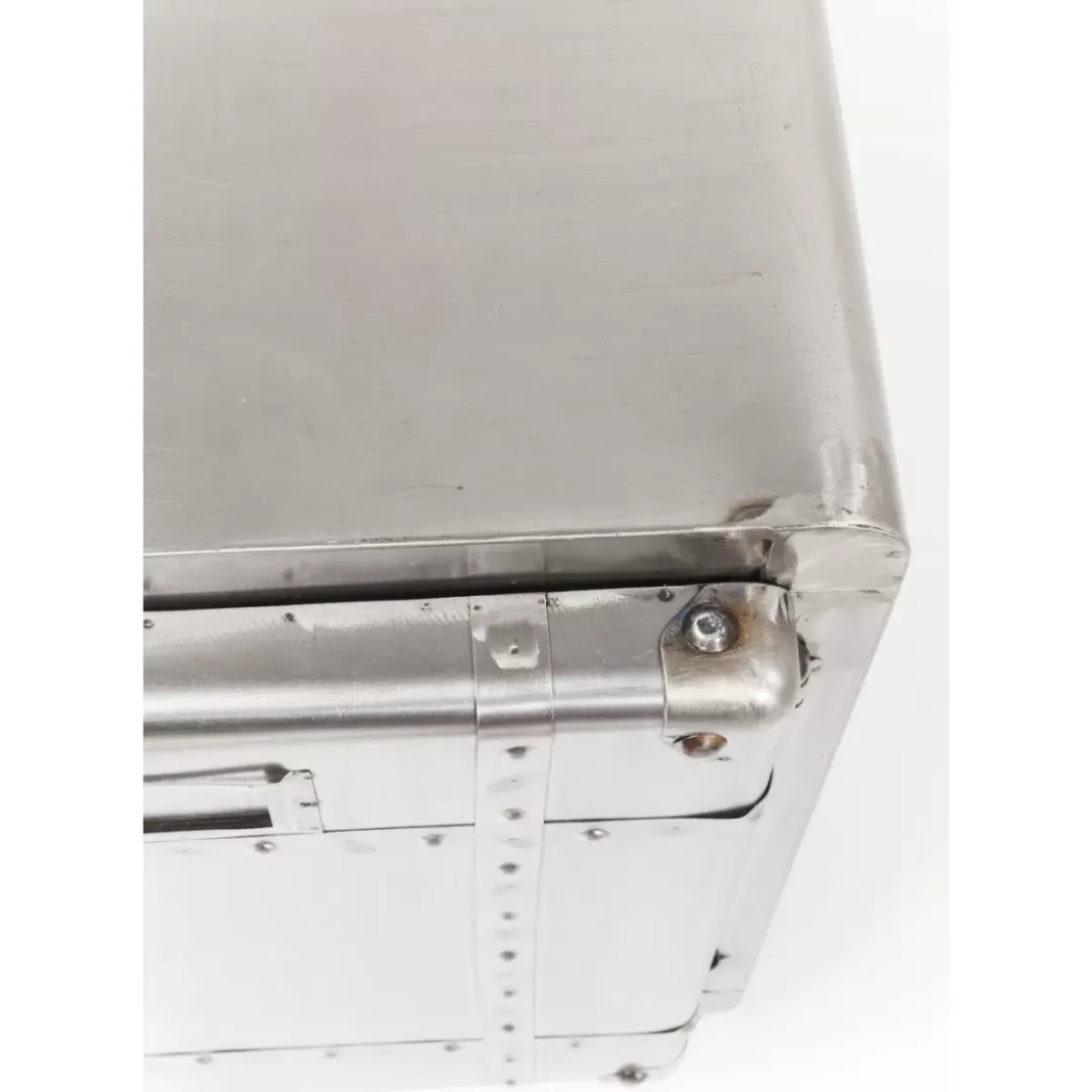 Rechteckige,Kompakte Kommode Aus Stahl Im Vintage-Look Auf Vier Rollen Mit Schweisnahten Und Zwei Grosen Ablageflachen H…