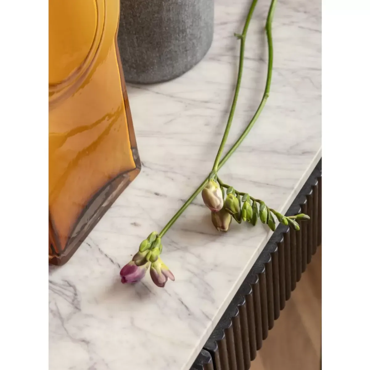Spielt Mit Dem Schwarz-Weis-Kontrast: Elegante Flurkonsole Mit Heller Marmorplatte Und Dunkelgrauem Massivholz-Korpus Au…