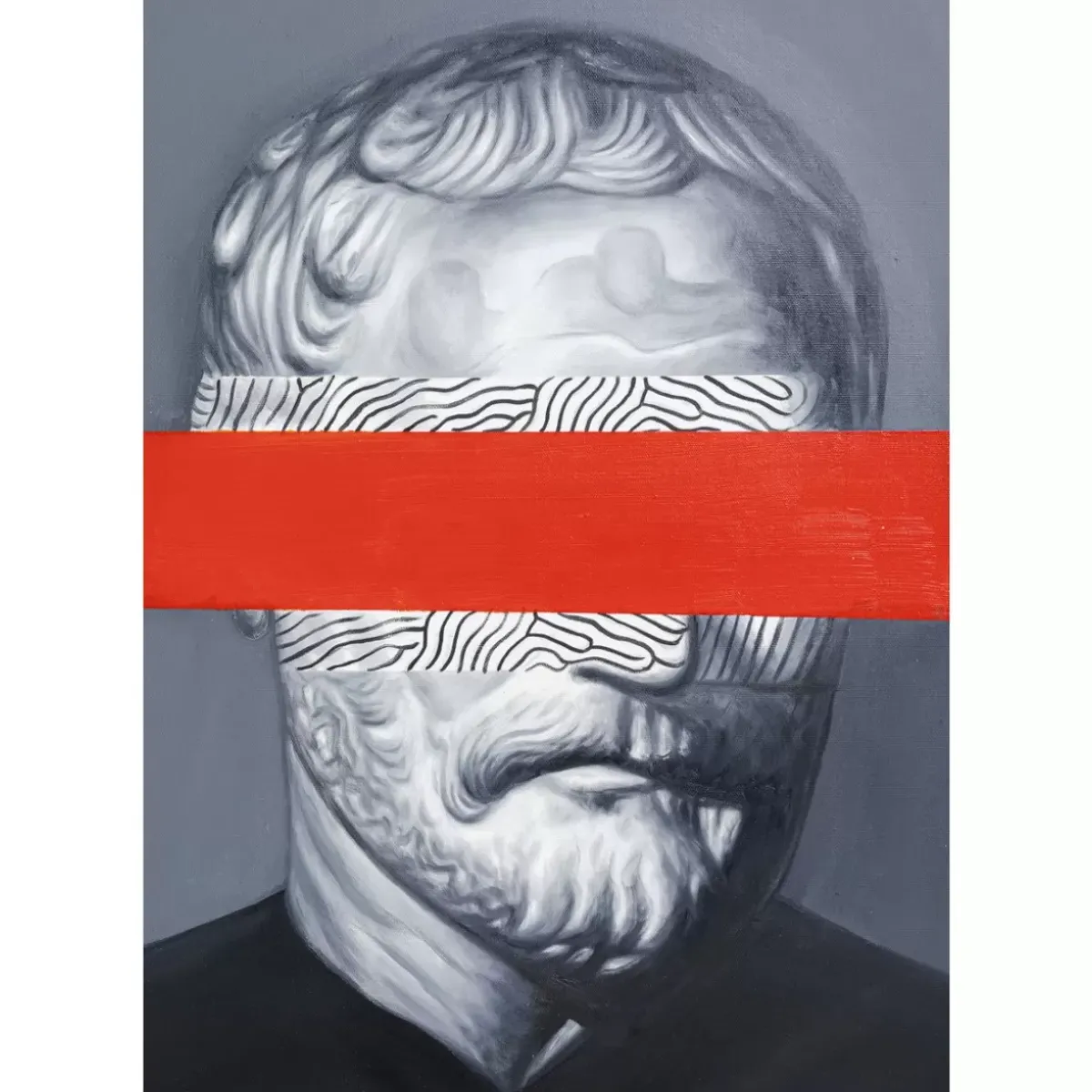 - Pop-Art Trifft Tradition: Der Rote Balken Und Das Schwarz-Weise Muster Vor Den Augen Verleihen Dem Gemalde Eine Geheimnisvolle Note
