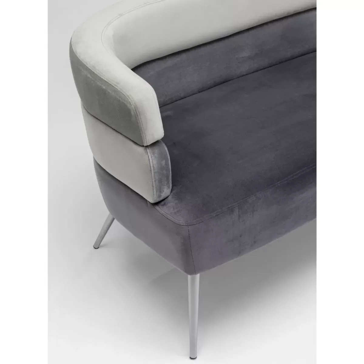 - Voll Gepolstertes,Kleines Sofa In Grauer Samtoptik Mit Silberfarbenen,Leicht Ausgestellten Beinen