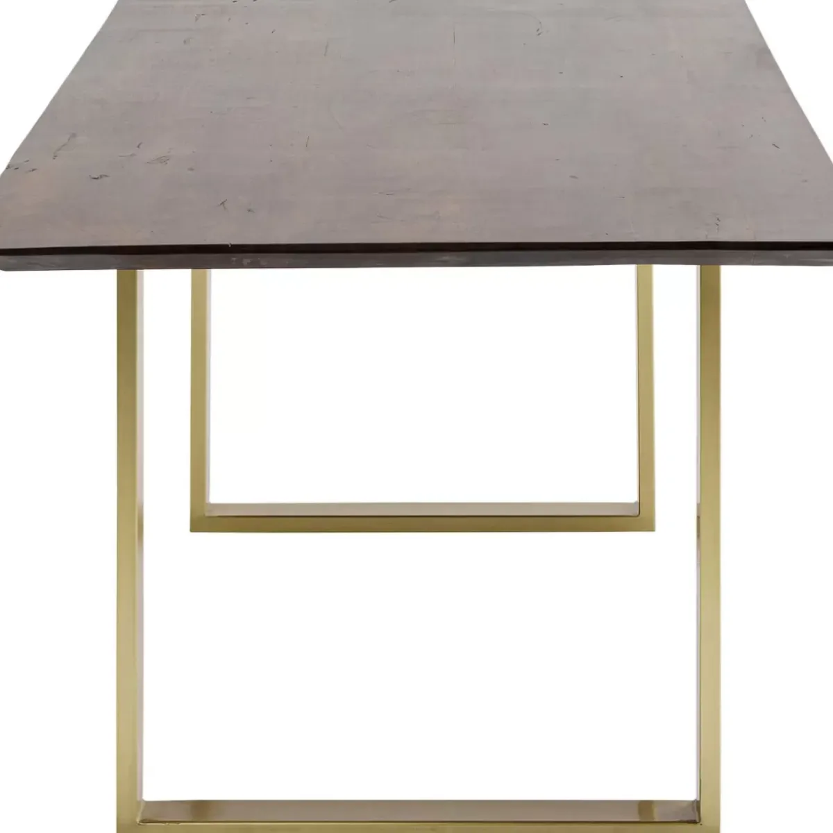 - Rechteckiger Tisch Aus Massivholz Mit Einer 3,5 Zentimeter Starken Platte Und Einem Stahlgestell Mit Messing-Veredelung
